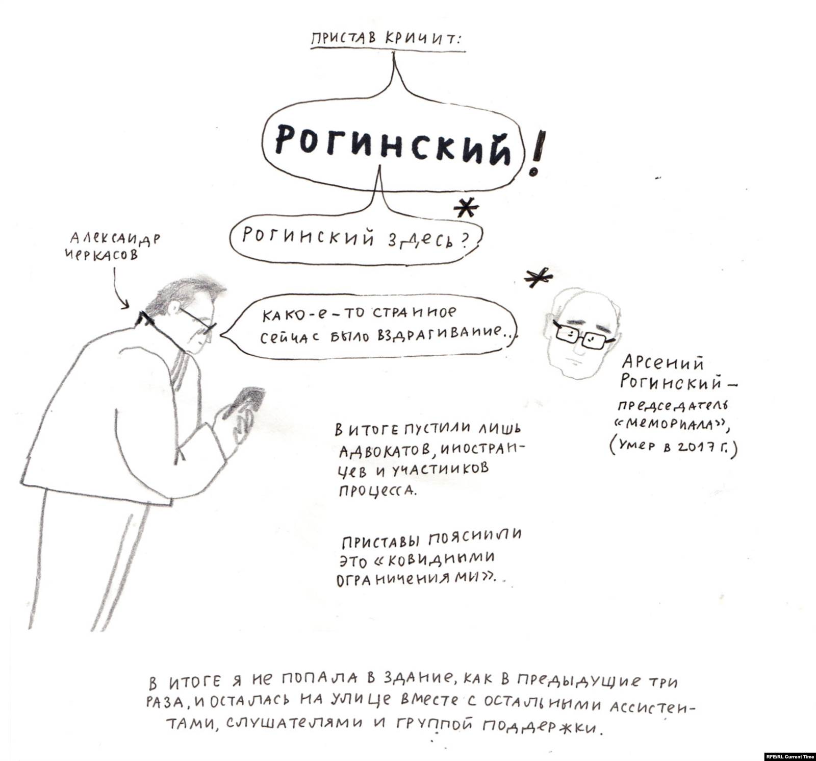 "А потом кто-то сказал негромко: "Апелляцию отклонили". Комикс-репортаж Кати Гущиной о ликвидации "Мемориала"